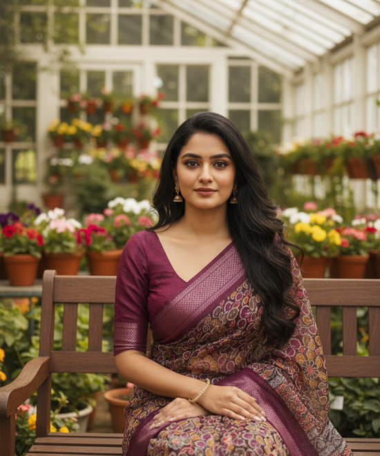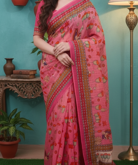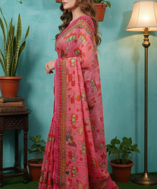 Soft and Light Weight Pure Linen Kalamkari Saree .