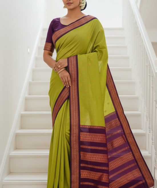 Cotton Blend Saree with Small Pum Pum Lace – 332 (Cotton Blend)