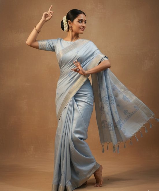 Fancy Soft and Light Weight Linen with Gota Patti Work Saree