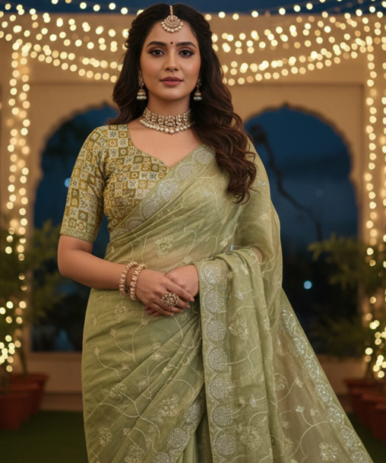 Fancy Soft and Light Weight Jimmy Chu  Work Saree