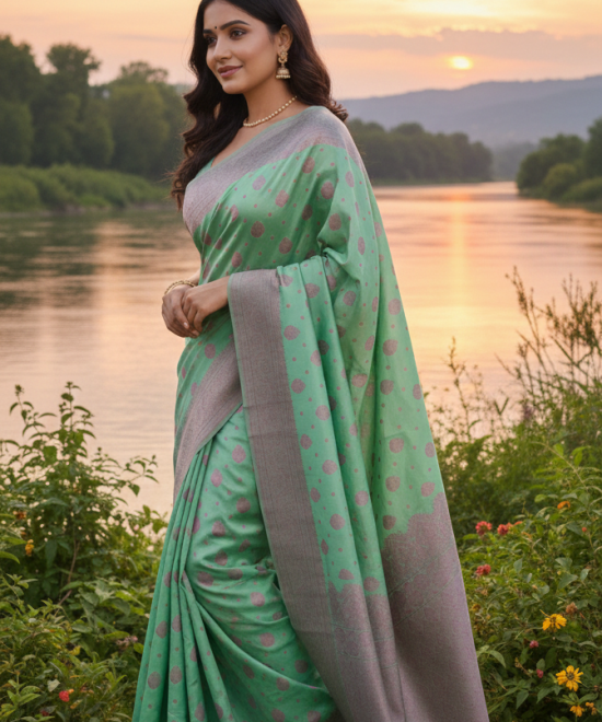 Fancy Soft and Light Weight Linen with Gota Patti Work Saree