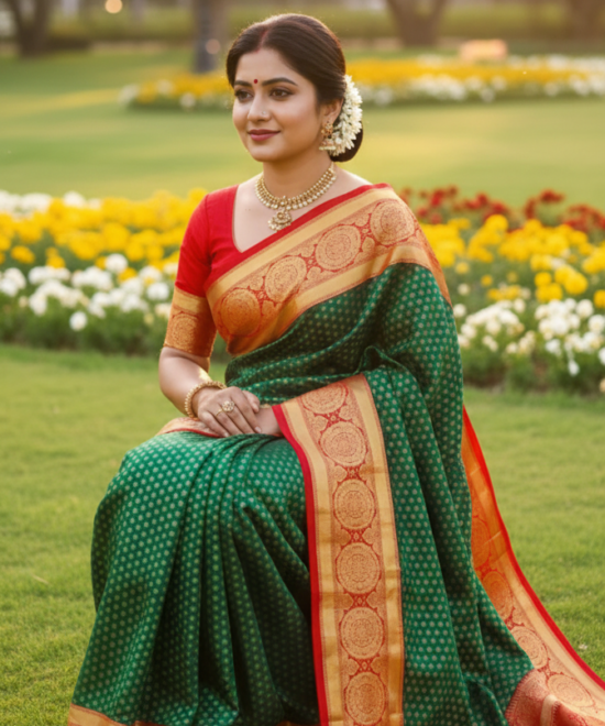 Cotton Blend Saree with Small Pum Pum Lace – 332 (Cotton Blend)