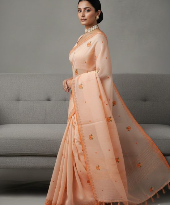 Fancy Soft and Light Weight Linen with Gota Patti Work Saree