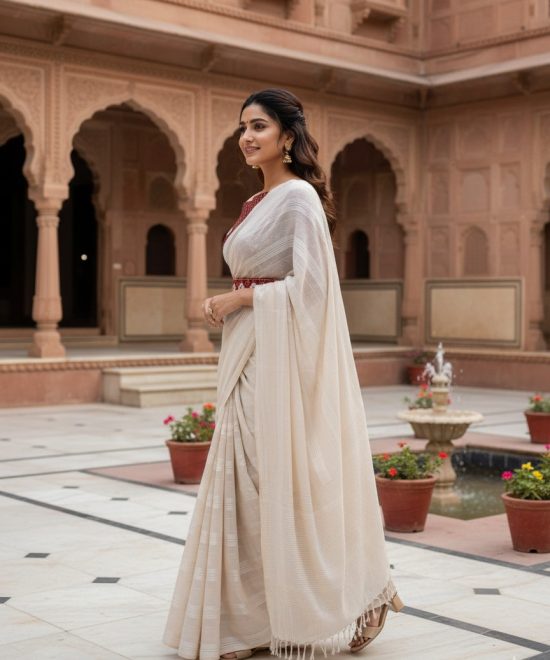 Fancy Soft and Light Weight Linen with Gota Patti Work Saree