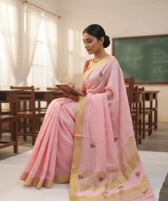 Soft and Light Weight Fancy Linen Moggam Work Saree .