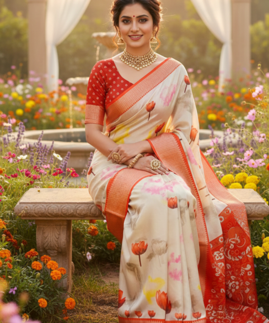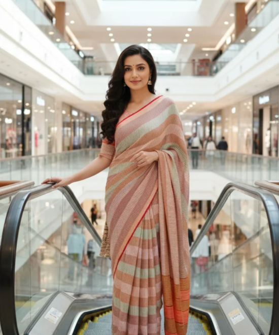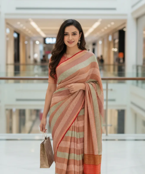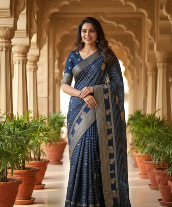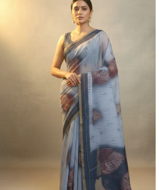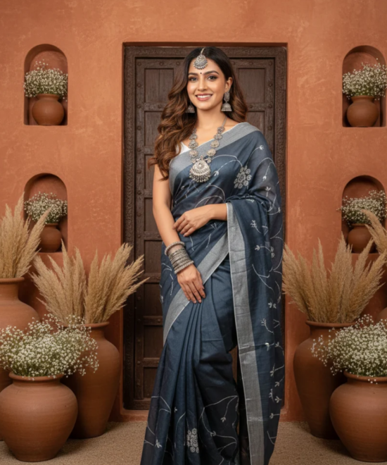 Fancy Soft and Light Weight Linen with Gota Patti Work Saree