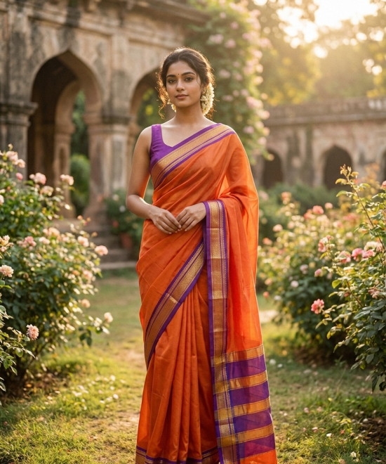 Cotton Blend Saree with Small Pum Pum Lace – 332 (Cotton Blend)