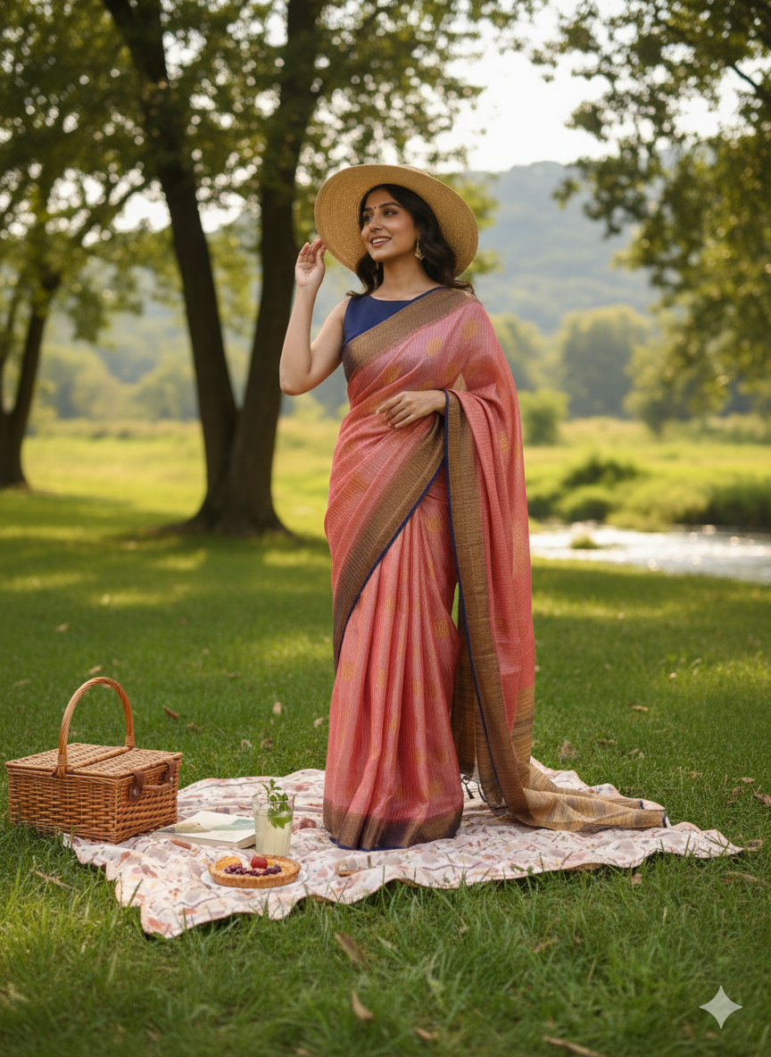 Work – Copper Zari Weaving all over saree