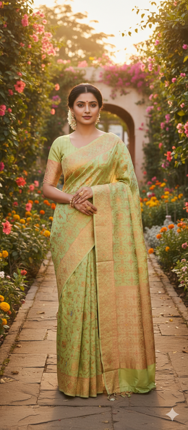 Work – Copper Zari with Little Bit Minakari Weaving all over saree