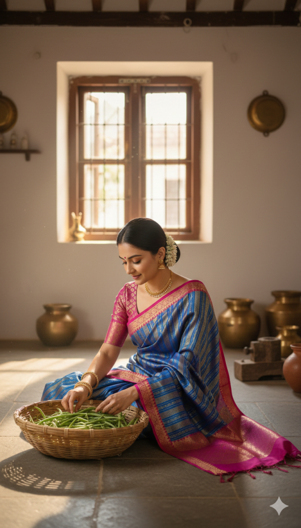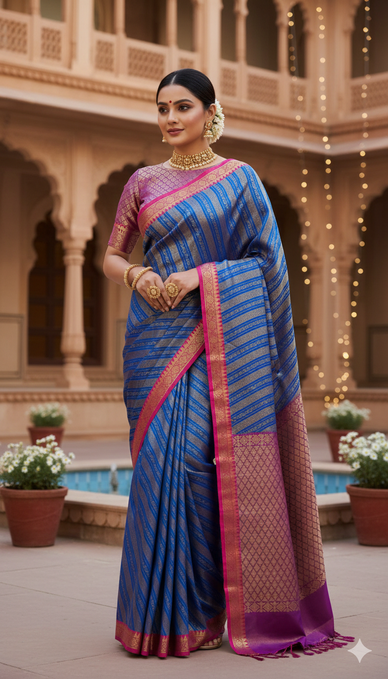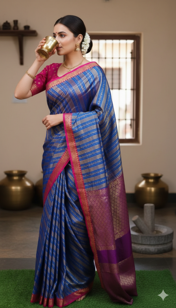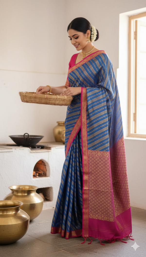 Pallu – Contrast Pink Color with Beautiful Design Silver Zari weaving
