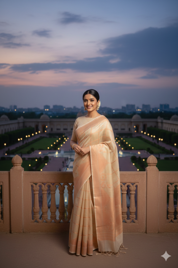 Work – Copper Zari weaving all over saree