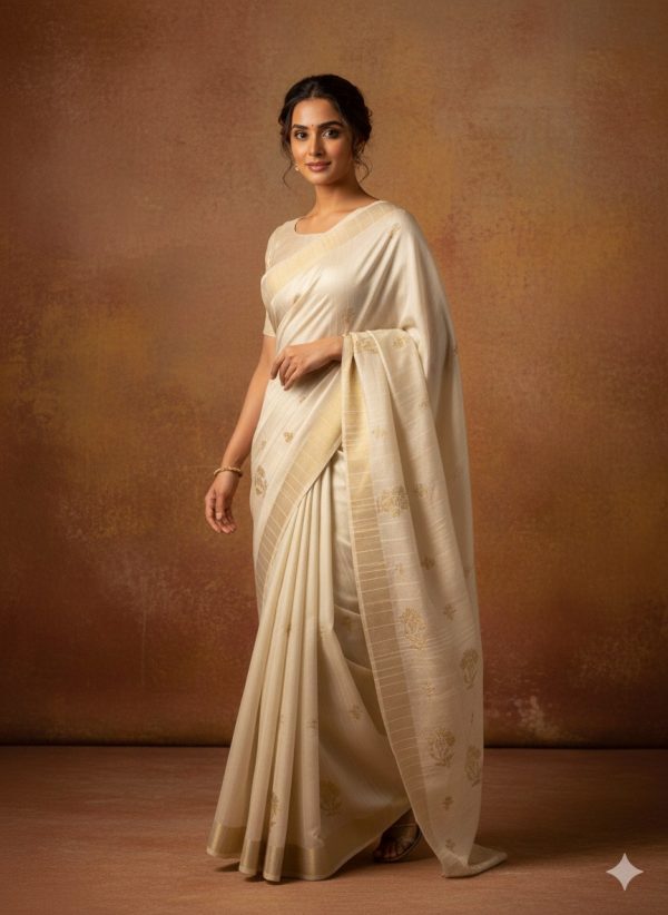Tussar Silk Embroidered  Saree