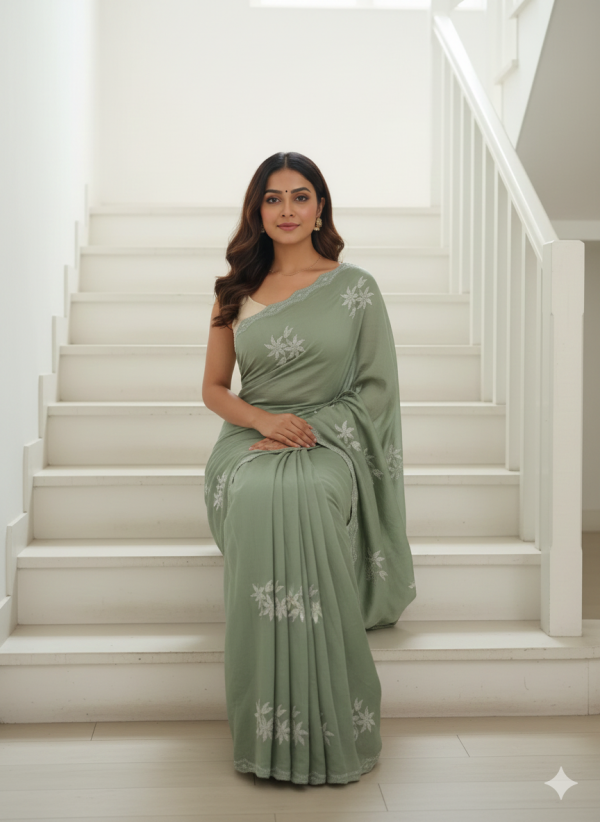 Work –  Embroidery and Stone Work with Stone work on Border All Over Saree