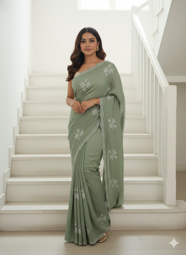 Fancy Soft and Light Weight Chiffon Embroidery and Stone Work Saree